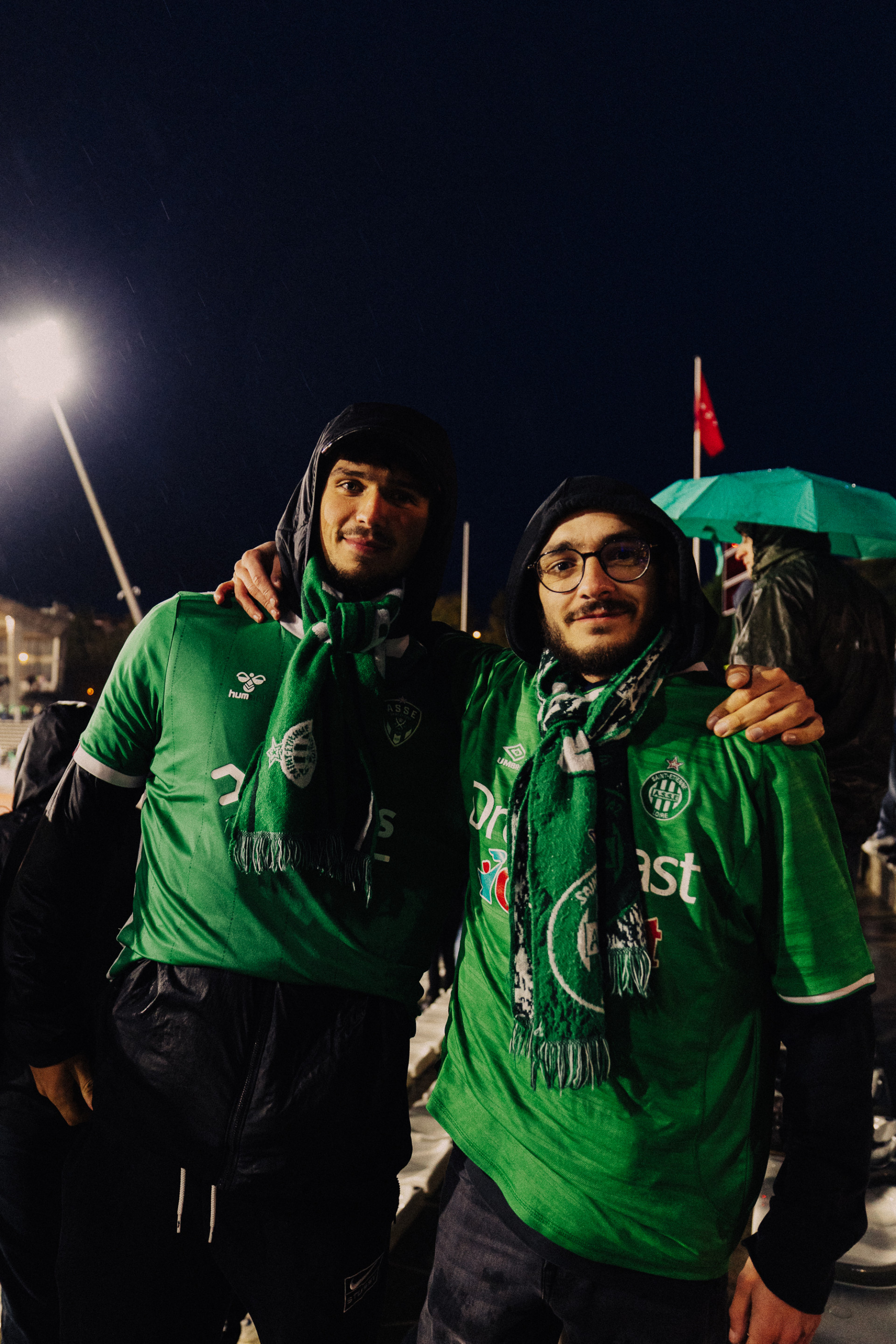 Rien n'arrêtera les 2 500 courageux supporters Verts. Pas même la pluie ! 🌧️