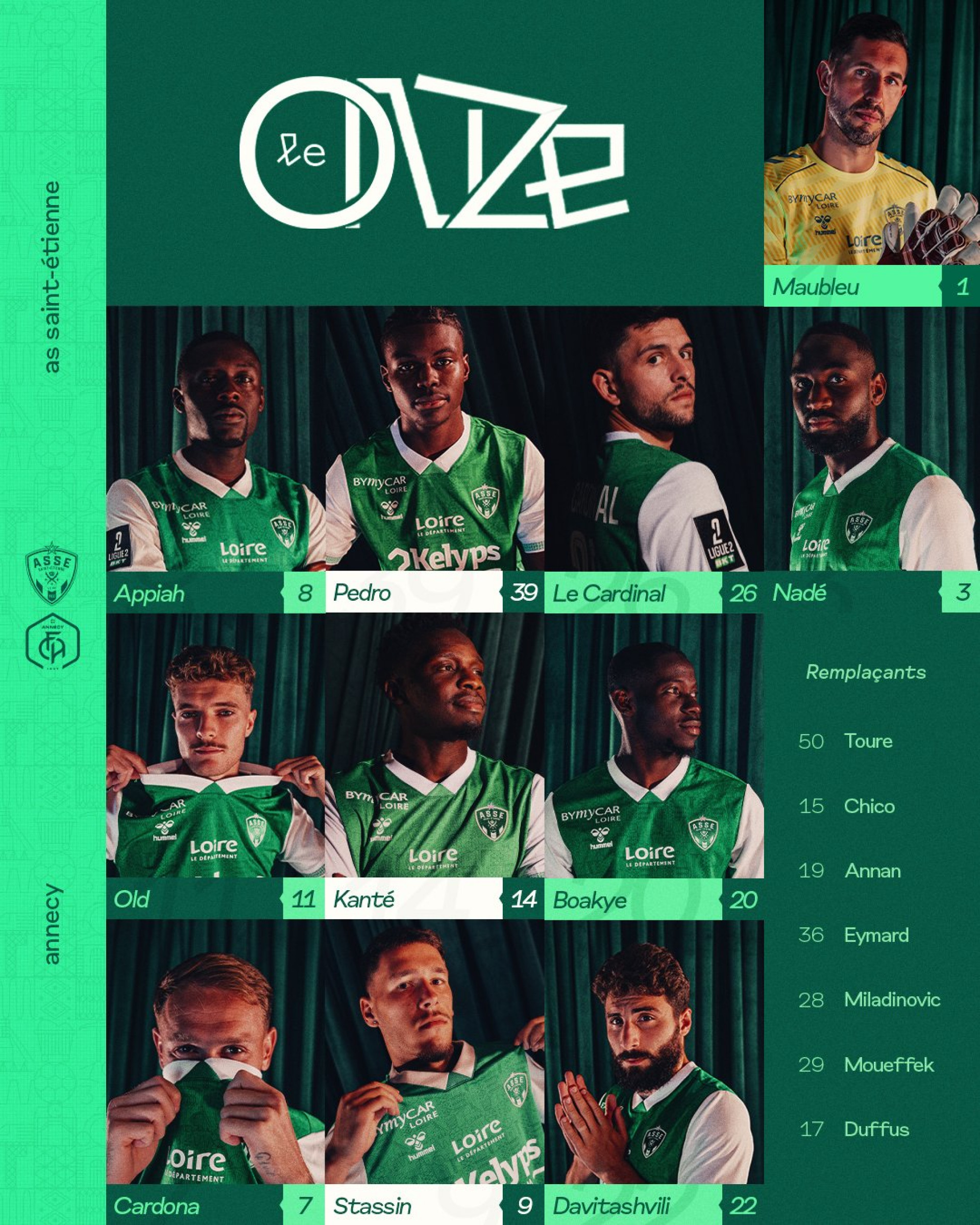 👥 Maubleu, Appiah, Pedro, Le Cardinal, Nadé, Old, Kanté, Boakye, Cardona, Davitashvili, Stassin