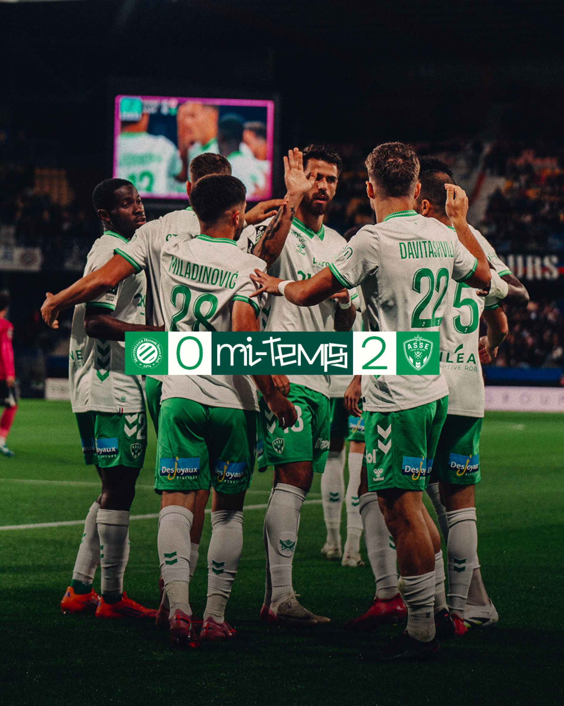 La seconde mi-temps est lancée à la Mosson. Allez les Verts !