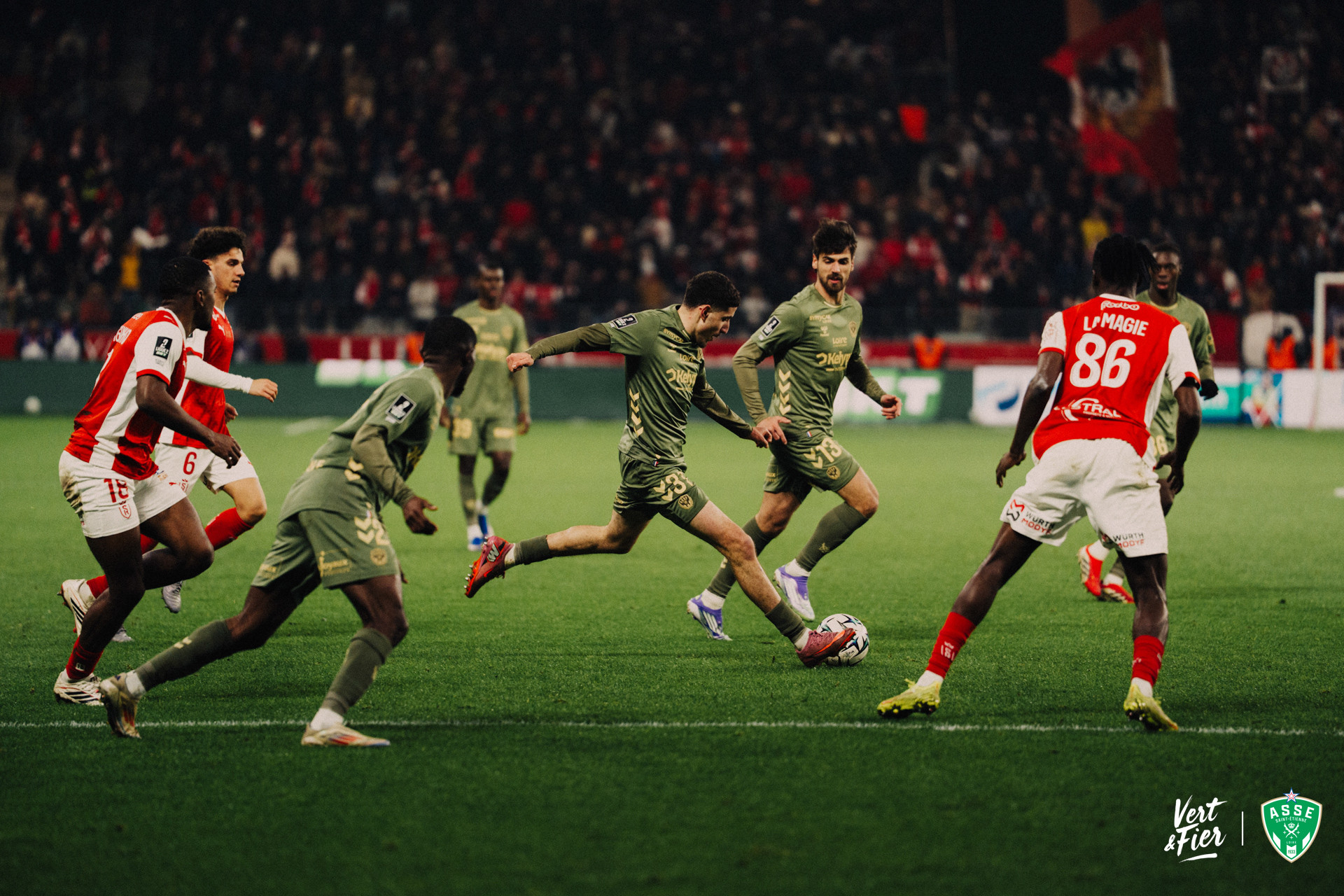 La partie débute sur un frisson ! Après une perte de balle que les Verts sont tout près d’exploiter, Reims part en contre et Gautier Larsonneur doit sortir et commet une faute, discutable, à la limite des 16m. Heureusement, le coup franc de Nakamura n’est pas cadré (1e). À peine soulagés, les Stéphanois enregistrent un coup dur avec la sortie sur blessure de Mahmoud Jaber (7e) mais ils ne se démobilisent pas. La preuve avec ces tentatives d’Augustine Boakye (11e, 14e, 17e), Nadir El Jamali (16e) et Florian tardieu (19e) qui marquent un temps fort pour les Ligériens. Les Verts prennent le contrôle du match même si les occasions se font plus rares par la suite, à l’exception d’un centre tendu de Ben Old qui affole Jaouen (27e) puis d’un tir du Néo-Zélandais (29e). Après la demi-heure de jeu, les Stadistes se font plus pressants dans les 30 derniers mètres mais ne décrochent pas mieux que des corners. Le premier acte se conclue sur un score inchangé.