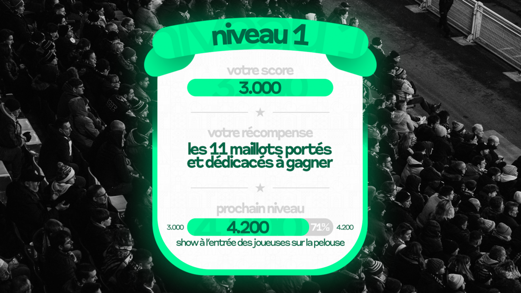 Le premier niveau des Défis de GG est débloqué ! Les 11 maillots portés et dédicacés seront à gagner à l'issue de la réception de Lens par les Vertes le samedi 28 mars à 17h à Geoffroy-Guichard.