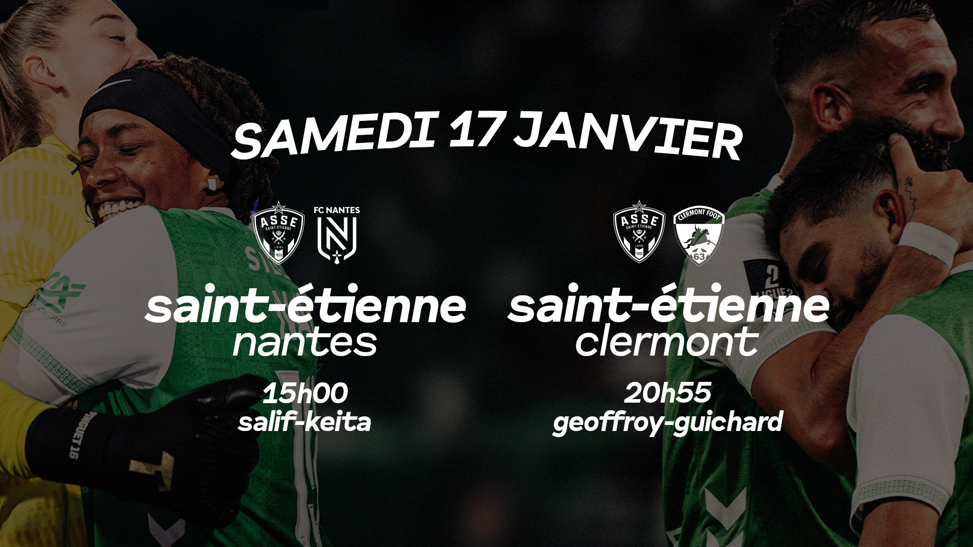 Verts et Vertes ont rendez-vous à domicile, ce samedi, à l'occasion des 19ème journée de Ligue 2 BKT et 13ème journée d'Arkema Première Ligue. Venez les encourager pour l'occasion et vivez un week-end 100% AS Saint-Étienne !