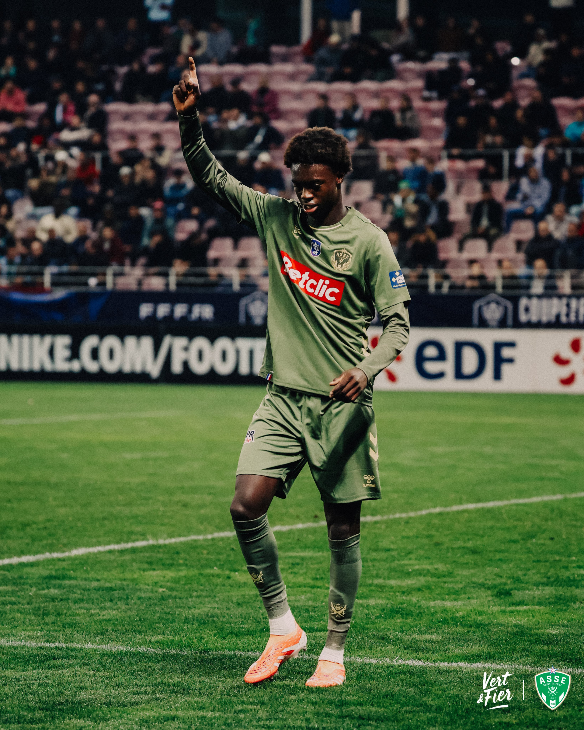 Nouveau beau mouvement collectif stéphanois. À la finalité, Aïmen Moueffek prend sa chance de volée. Au-dessus !