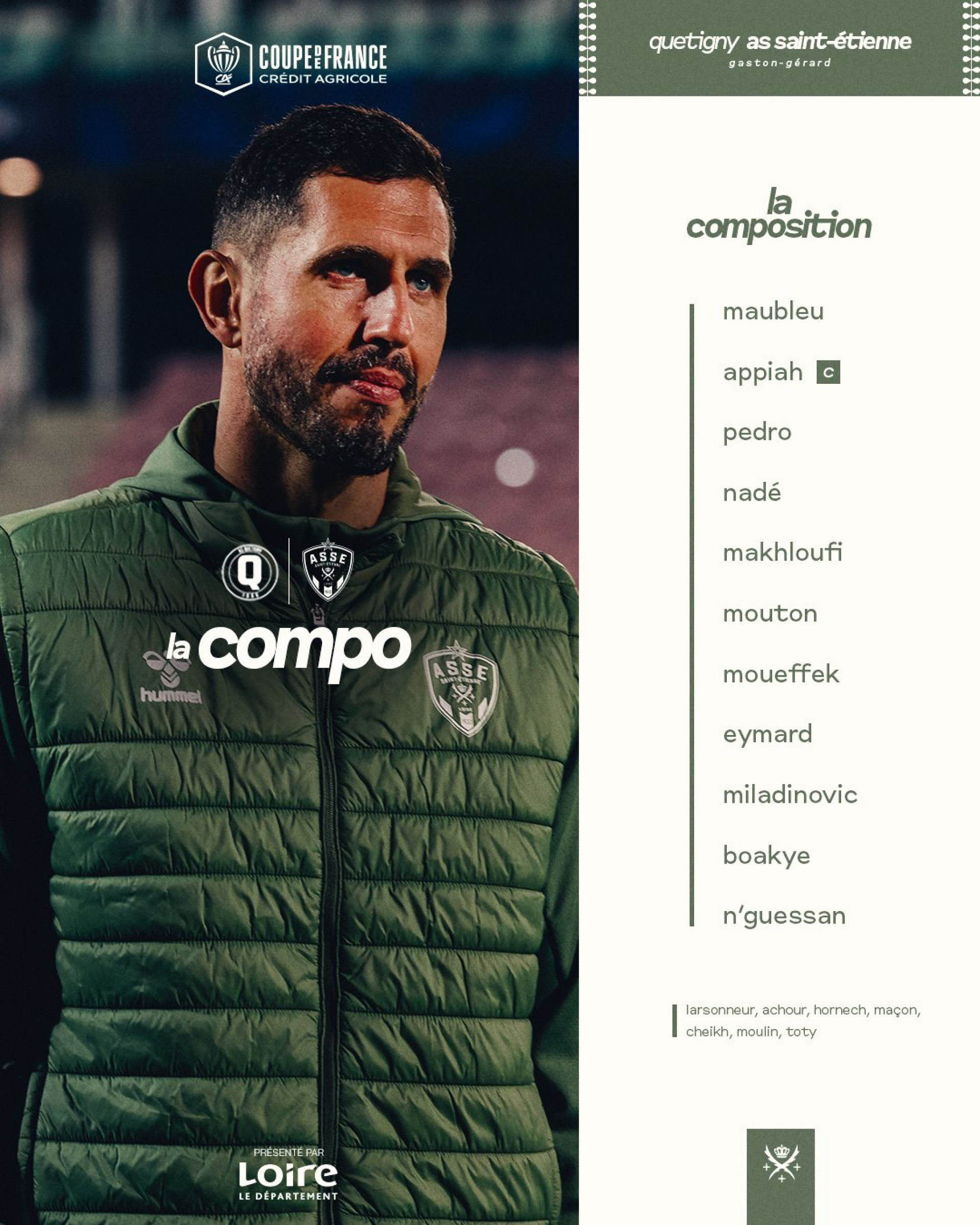 Bienvenue et bonsoir dans ce live du 7e Tour de Coupe de France ! Les Verts vont affronter Quetigny au stade Gaston-Gérard de Dijon.